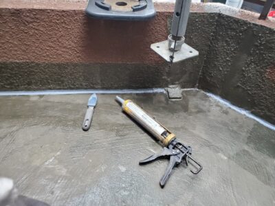 部分的に表層クラックも発生しているので下地処理をしてから防水工事する必要があります。