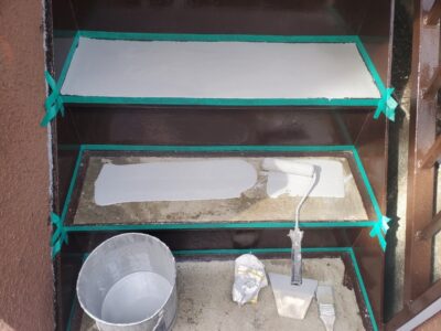 階段部分も同様にウレタン防水層はこれで塗りが仕上がりになるので凹凸なく平滑に塗り上げます。