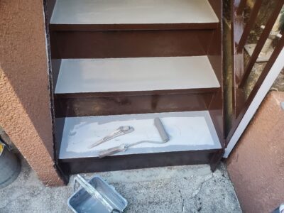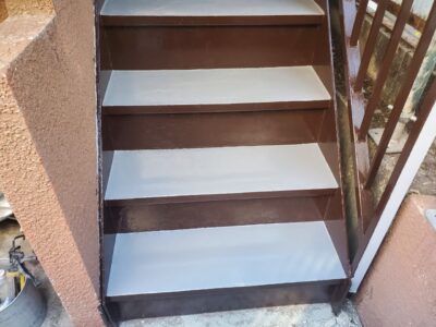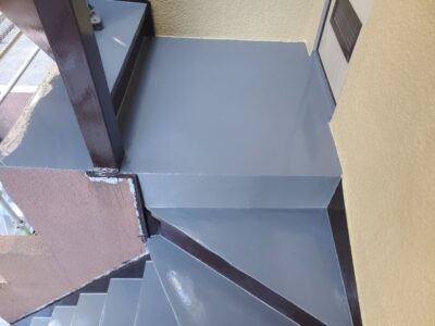 鉄骨階段もトップコートで防水層を保護して防水完了となります。