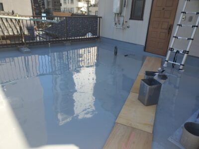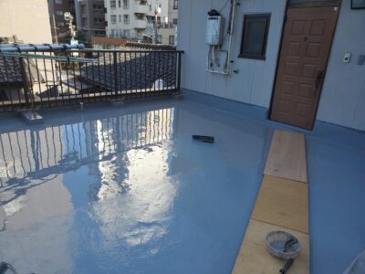 ウレタン塗膜防水 通気緩衝工法 フッ素トップコート・屋上防水工事 バルコニー防水工事 豊島区上池袋K様