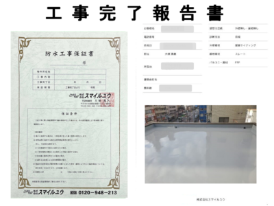 お引渡しの後に工事完了報告書と工事保証書を提出させて頂きます。