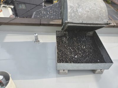 屋上のトップコート塗りが完了しました。