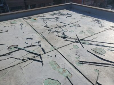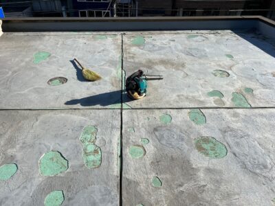 ※既存防水層脆弱部撤去・補修は、経年劣化により傷んでいる防水面を部分的に撤去する作業です。