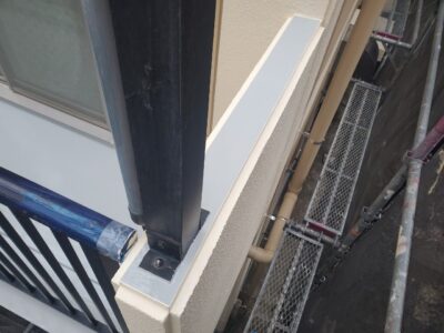手すり天端にも下地処理カチオンモルタル塗りをします。