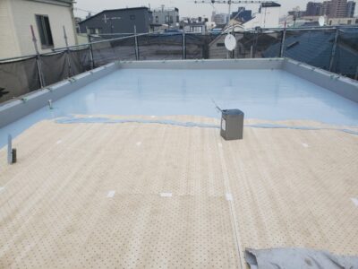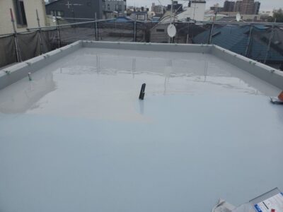 屋上全体に防水主材を平滑に凹凸なく規定量を塗ります。