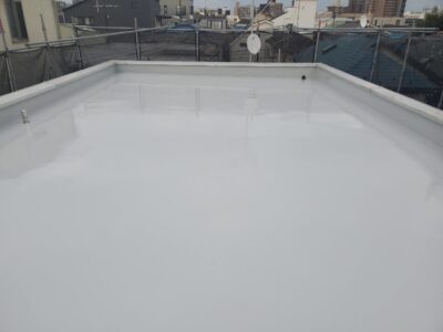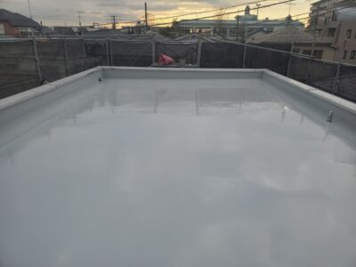 ウレタン防水主材を規定塗布量を塗ったあとにトップコート塗りが完了しました。