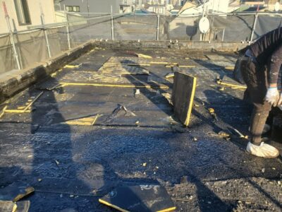 既設のアスファルト断熱露出防水層を全て撤去します。