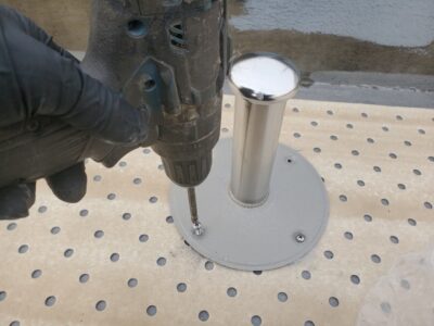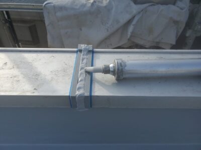 プレートを固定したら周囲を補強クロス+シーリング打ちをして脱気筒の取付が完了しました。