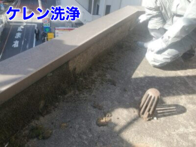 立上り防水面も汚れが付着しやすく、完全に汚れを除去してから防雨水を行うことは防水材の密着性を高めるためます。