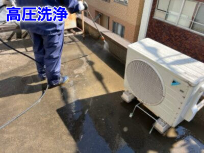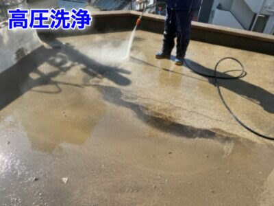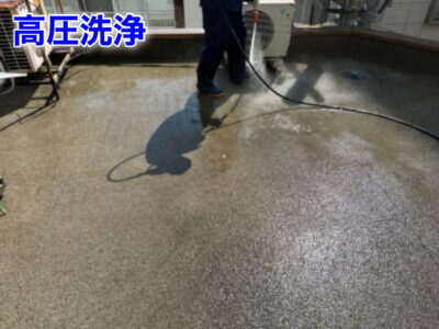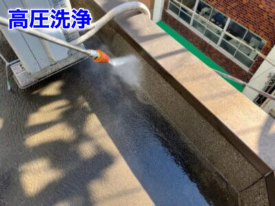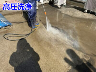 ※高圧洗浄は、防水面に付着している汚れを10~15Mps程度の水圧で洗う作業です。