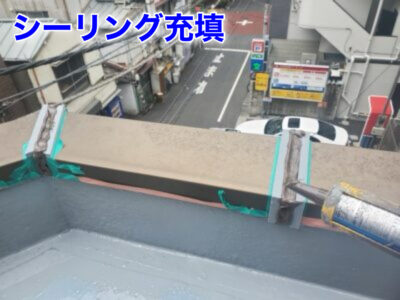 ウレタン塗膜防水 通気緩衝工法 フッ素トップコート アルミ笠木オーバーブリッジシーリング | |||||