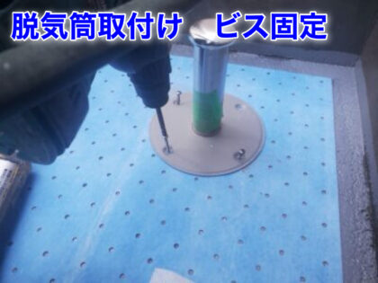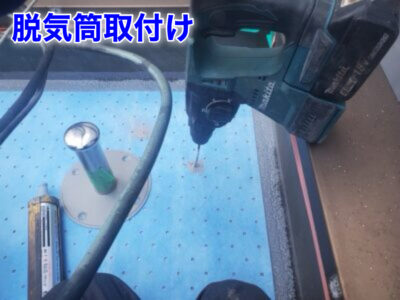 脱気筒のプレート周りに補強クロス貼り+シール打ちをして平滑にヘラで均します。