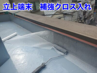 立上りや端末は補強クロスを貼ってその上からウレタンを塗ります。