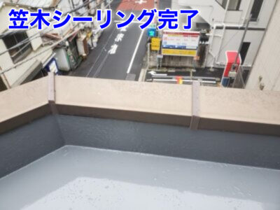 屋上笠木オーバーブリッジシーリング 笠木防水 ウレタン塗膜防水 通気緩衝防水工法 フッ素トップコート 屋上防水 中央区八丁堀Tビル