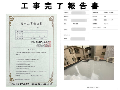 お引渡しの後に工事完了報告書と工事保証書を提出させて頂きます。