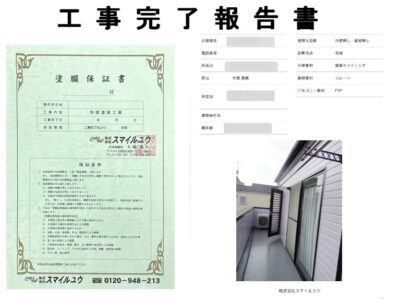 お引渡しの後に工事完了報告書と工事保証書を提出させて頂きます。