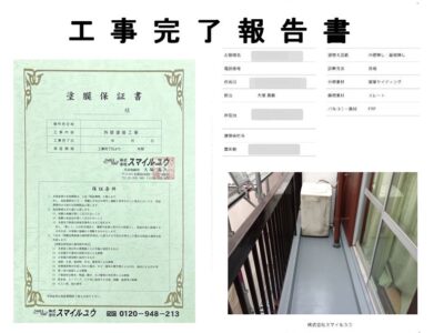 お引渡しの後に工事完了報告書と工事保証書を提出させて頂きます。