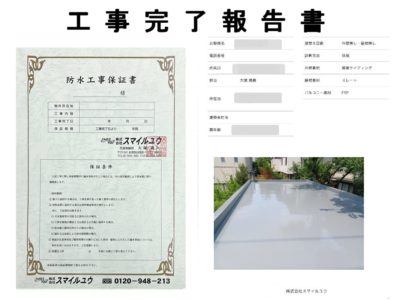お引渡しの後に工事完了報告書と工事保証書を提出させて頂きます。