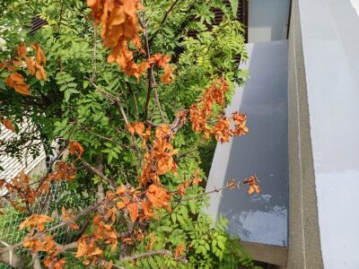 裏側のコンクリート庇天端も洗浄をします。