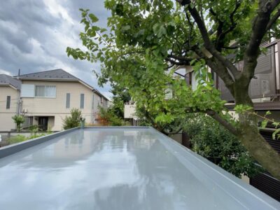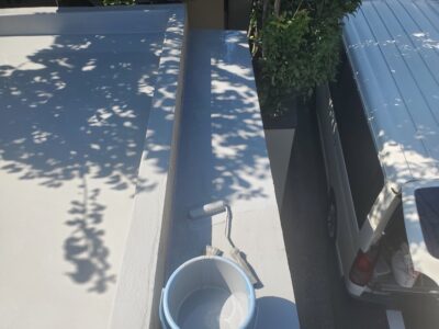ガレージ陸屋根防水 外壁クラック防水 シール防水処理 ウレタン塗膜防水 密着防水工法 遮熱フッ素トップコート+高強度ウレタン防水 杉並区清水W様