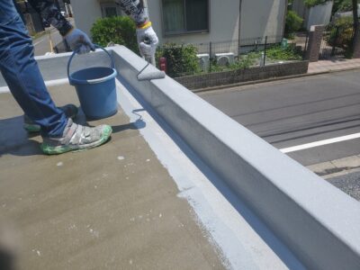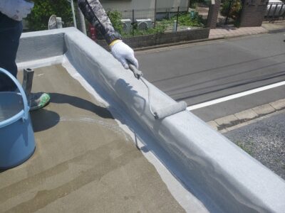 トップコートの性能が失われると次に防水層の劣化が始まるのでとても防水工事にとってとても重要な最終工程となります。