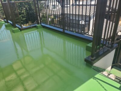 ウレタントップコートの場合には5年を経過したらトップコートの塗り替えが防水保証の条件となります。今回は長期保護が可能なフッ素トップコートで安心できます。