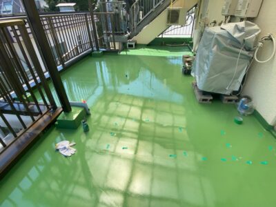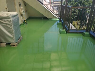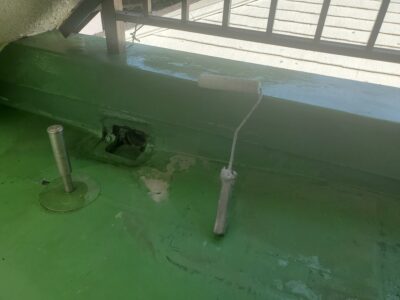 トップコートの性能が失われると次に防水層の劣化が始まるのでとても防水工事にとってとても重要な最終工程となります。