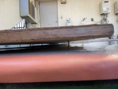 置き場も専用の架台ではなくブロックを置いた状態なので、防水工事の際にはブロック架台も撤去して防水をする必要があります。