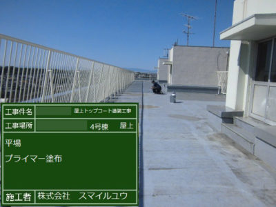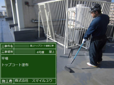 T住宅4号棟 屋上防水トップコート塗り