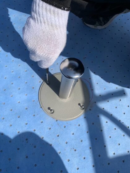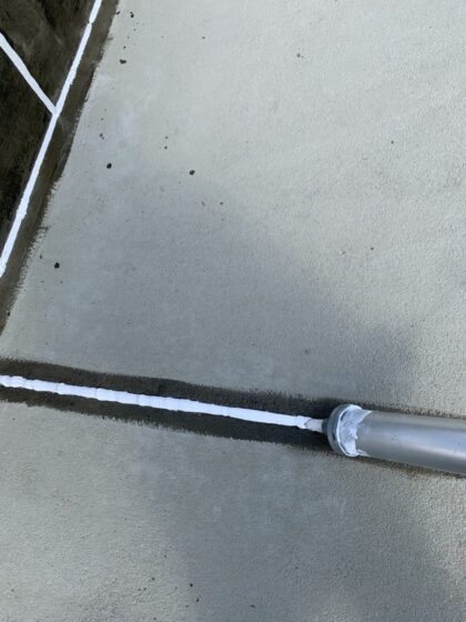 ※手すり支柱グラウト注入は、手すり支柱へ無収縮モルタルで防水し雨水の侵入を防ぐ作業です。