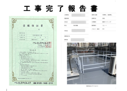 お引渡しの後に工事完了報告書と工事保証書を提出させて頂きます。