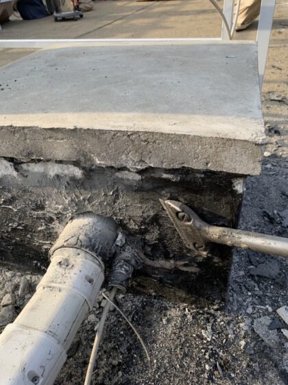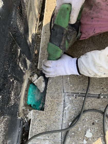 改修用ドレン設置のために、既存の押えコンクリートを撤去します。