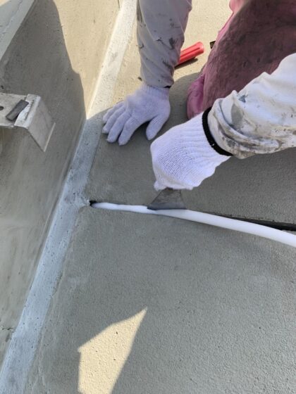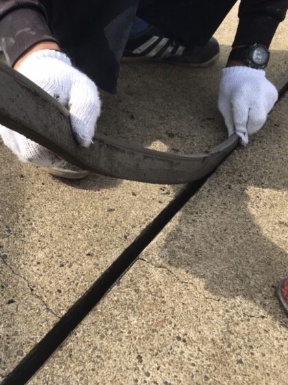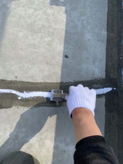 伸縮目地を全て撤去してから、溝内にシーリングを打ちます。