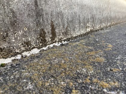 立上りに使われていた既存パネル材の剥離している脆弱部を撤去します。