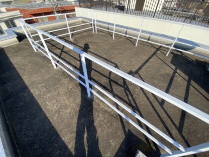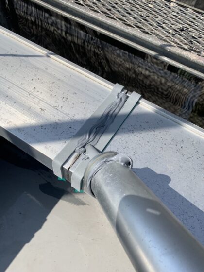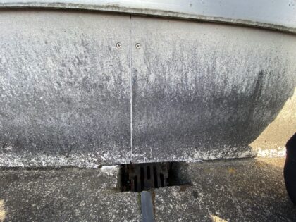 笠木を着脱して天端防水をし、ジョイント部にオーバーブリッジシール施工を推奨します。脱着のためには外周部に足場が必要になります。