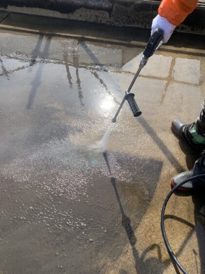 ※高圧洗浄は、防水面に付着している汚れを10~15Mps程度の水圧で洗う作業です。