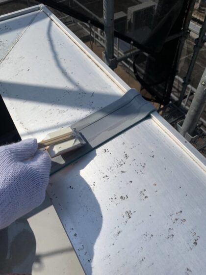 シーリングをヘラ均して平滑に仕上げます。