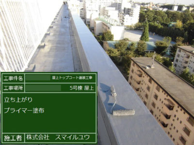 パラペット立上りのプライマー塗り