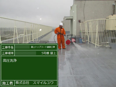 T住宅6号棟 屋上防水トップコート塗り