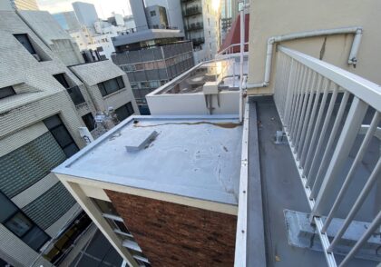 塔屋防水 既存ウレタン防水層脆弱部撤去 入隅シーリング 改修用ドレン 設置 工事保証書 千代田区神田小川町S様