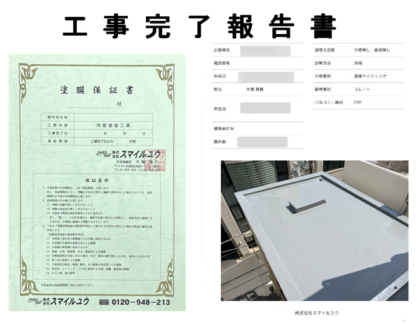 お引渡しの後に工事完了報告書と工事保証書を提出させて頂きます。