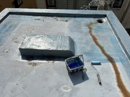 トップコートは、ウレタン防水主材塗膜を保護する役割があり防水層を太陽の熱や紫外線から守り直接に外気や雨などの影響による劣化を防ぐ効果があります。