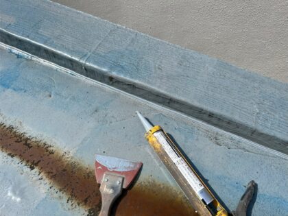 ※入隅シーリング ノンブリードウレタンは、平場と立上の接続部が下地の動きにより防水層が切れない為の作業です。