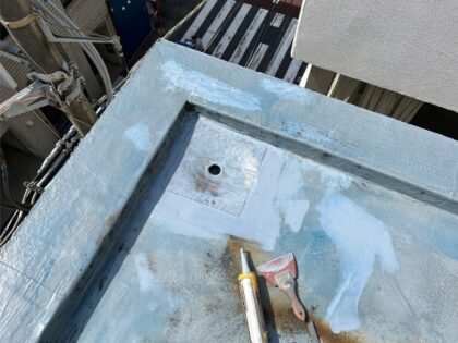 脆弱撤去部の欠損をウレタン防水材で補修をします。