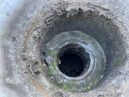 排水口周辺の防水層が劣化しています。今回の防水工事で改修ドレンを施工することを推奨します。