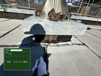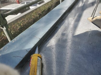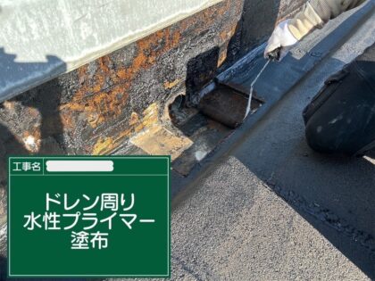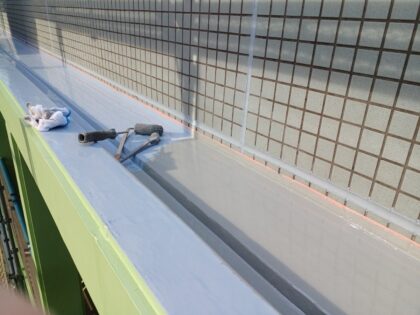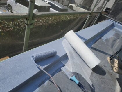 庇部分の防水を行います。まずはプライマーを塗布していきます。