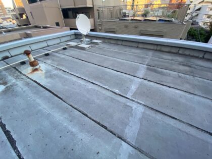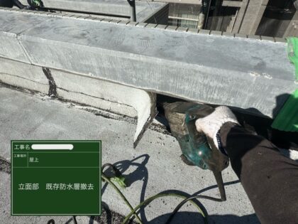 アスファルト露出防水工事 立上り防水層を全撤去 トーチ防水工法 マンション屋上 大規模修繕 豊島区西池袋 マンションP