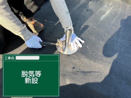 脱気筒の新設を行います。脱気筒は防水層下部と下地間の水分を換気する機能があります。