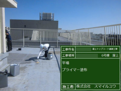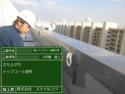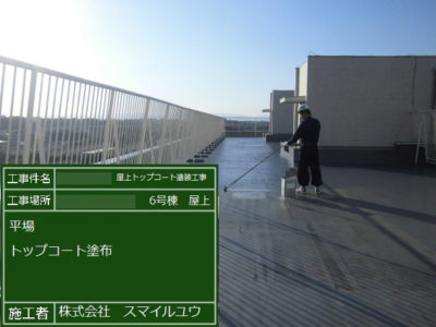 T住宅6号棟 屋上防水トップコート塗り