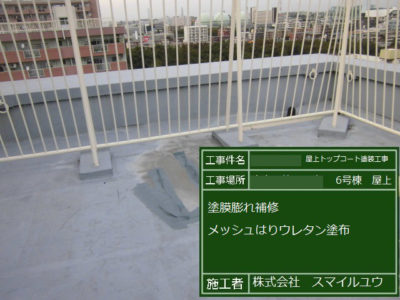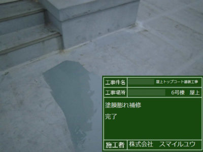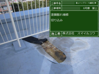 塗膜膨れ部のウレタン補修完了